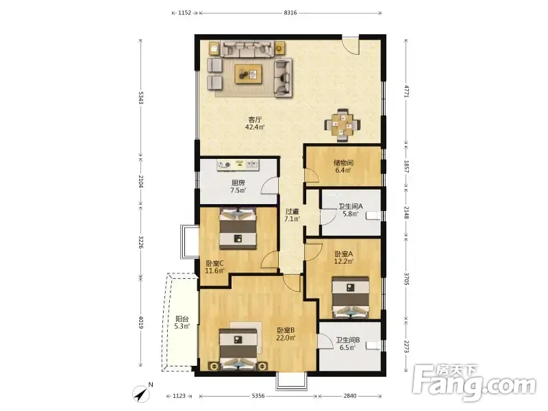 合和新城 4室2厅 156.0平米