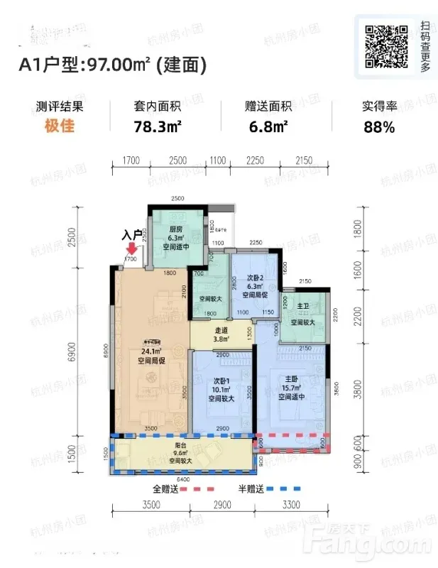 合租:次卧余杭南苑华元启航城 3室1厅 97㎡ 1000元/