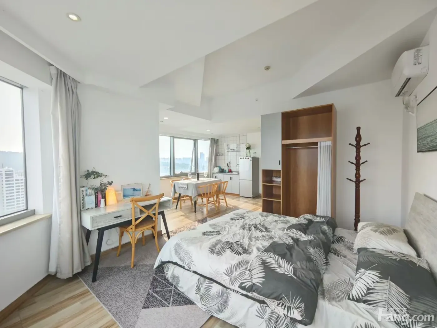 1. 开放式厨房,干湿离,45方实用面积,可月付。 2. 家具家电齐全,拎包即住,入室保洁,安保,不间断巡楼,智能门锁,门禁,呵护安全。 3. 商业综合体聚集,生活便利,出行方便。 4. 公寓保姆式服务,安全,舒心。 5.包网包物业费。