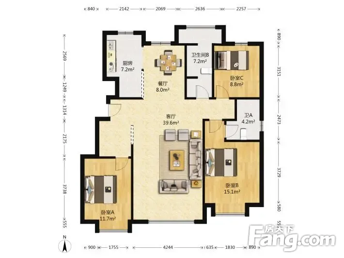 3室1厅2卫