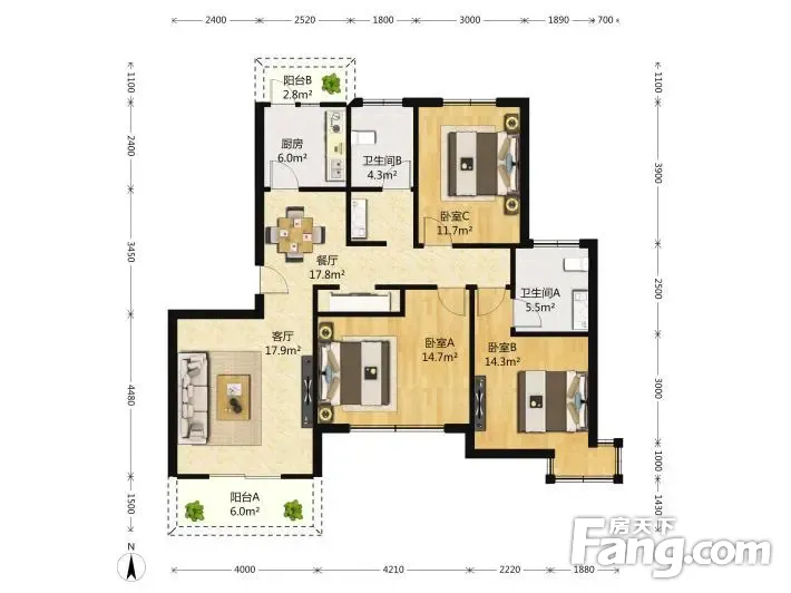 3室1厅2卫