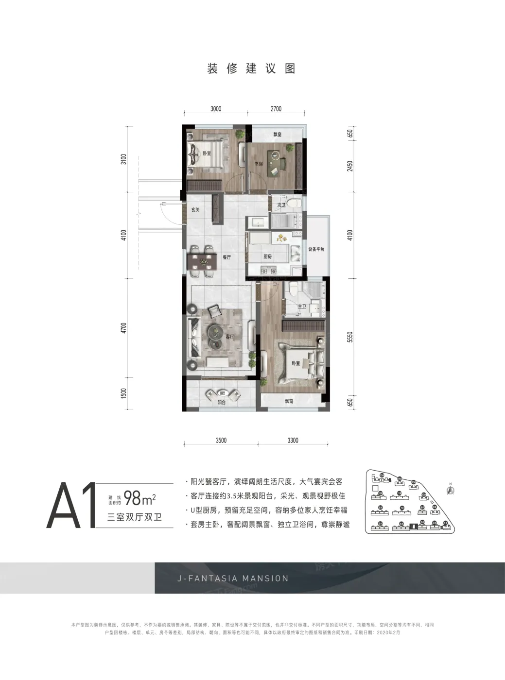 锦粼云荟 三房两卫洋房 中央空调、全屋品牌家私