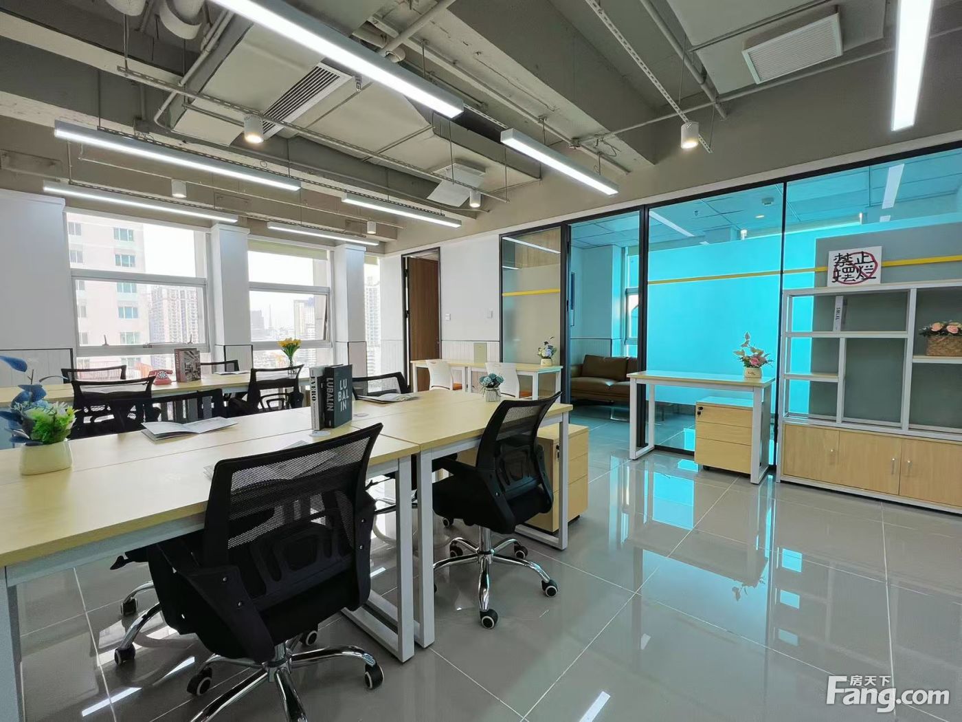 全景落地玻璃,东南向靓房双套间,20人办公室出租!可注册!