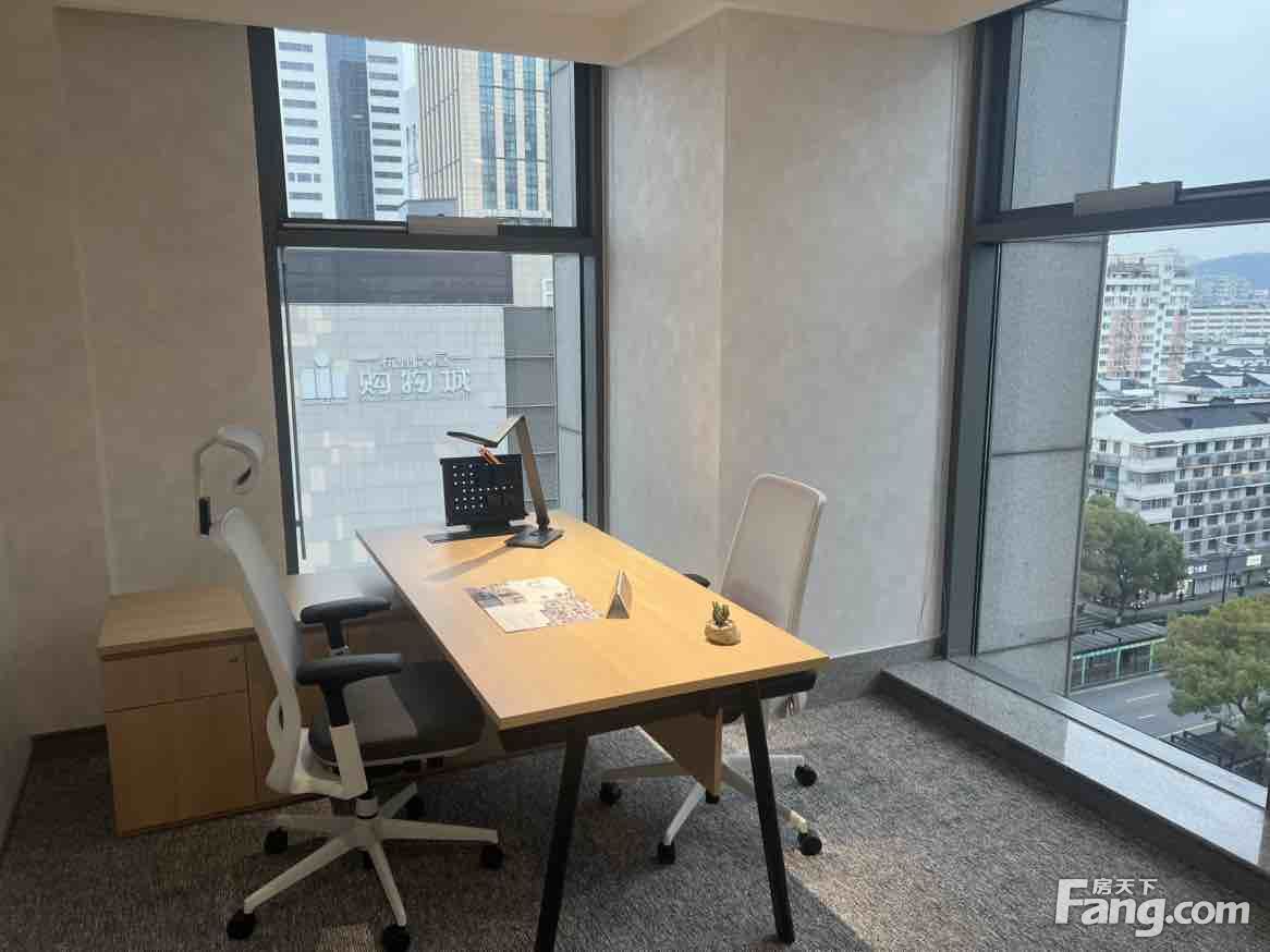 特点: ? 3+1户型:1间领导办公室+1间经理室+1间会议室,公区15人工位,另打造超大LOGO墙、休闲会客区、储物空间等; ? 西南朝向,环城北路城市景观,采光充足,无遮挡; ? 70%得房率,利用率高; ? 高品质装修及家具,可拎包入驻办公。