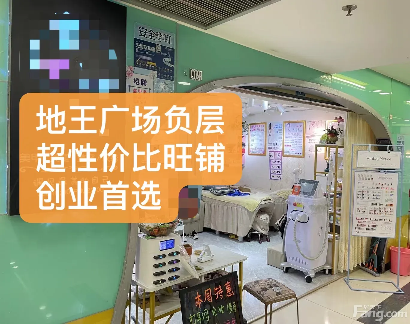 成熟商圈地王广场,人流旺地,饮食、停车配套设施完善。原租户经营美容美甲,无顶手费等费用,商铺在手扶电梯直落正对位置,位置非常醒目,客源丰富,可做美容美甲、服装鞋包等项目,创业起点低,质.优.之选!
