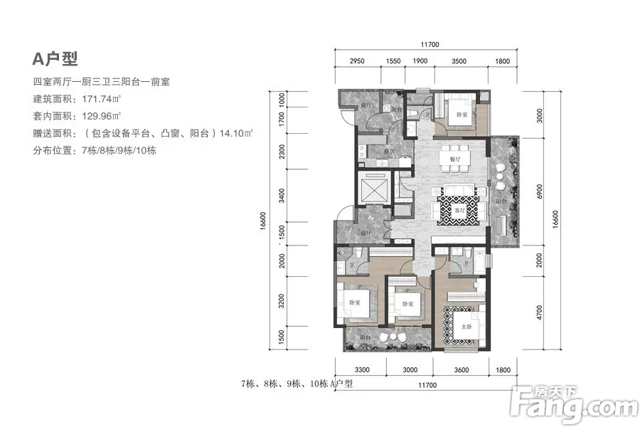 户型:4室2厅1厨3卫3阳台,东南向,面积:171平,室内干净卫生,有独立厨房,独立卫生间,独立阳台,视野开阔。租金:2600每月。