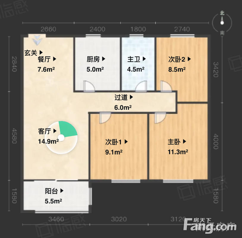 清辉东苑 3室2厅 88.20平