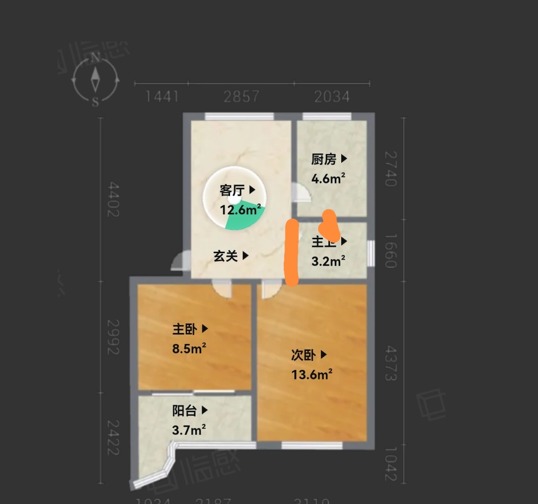 梅园小区 2室1厅 57.40平