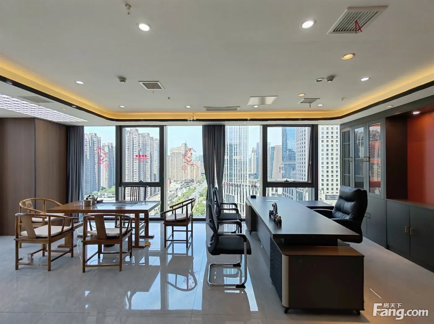 房源亮点 【商业办公选址领导品牌】 房源介绍 1项目名称:绿地峰创国际 2.建筑面积:235m2 3.价格:面议 4物业费:7.8/月平 电费0.6/度 空调自控 水费无 停车费1个以内免费 5装修程度:装修带家具 6房源介绍:交通便利人流量大,旁边就是万达商城7郑重:所发房源全部直立绝不点假!周边配套 周边地铁:地铁1号线(地铁大厦2号出口) 周边商场:天虹商场世茂广场万达商城金街 绿地缤纷城 配套设旅:地铁口莱蒙都会万达中心铺能中心绿地双子运 房源特色:绿地峰创国际大厦228平 电梯口 全新豪装两面采光。5个办公室一个业务区大气前台气派老总办公室格局好性价比高!此房源真实可靠如若虚假可以举报!!!