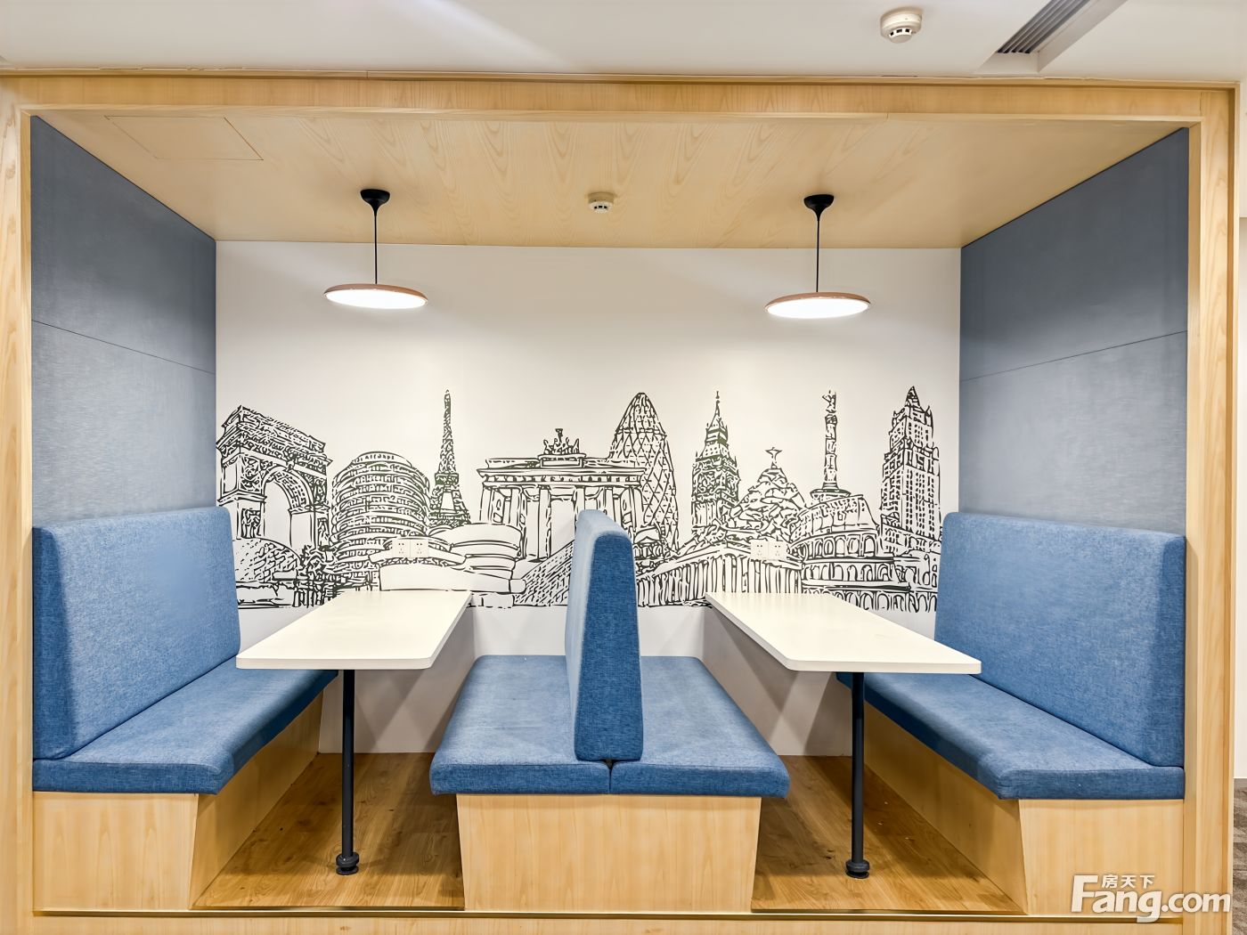 前台接待&接待会客室、会议室 配有咖啡机和冲茶设备的茶水间 配有打印室 超大且舒适的共享商务休闲区 包含物业费、水电费、清洁费和前台行政支持,一价全含