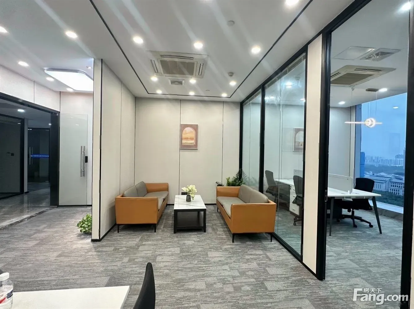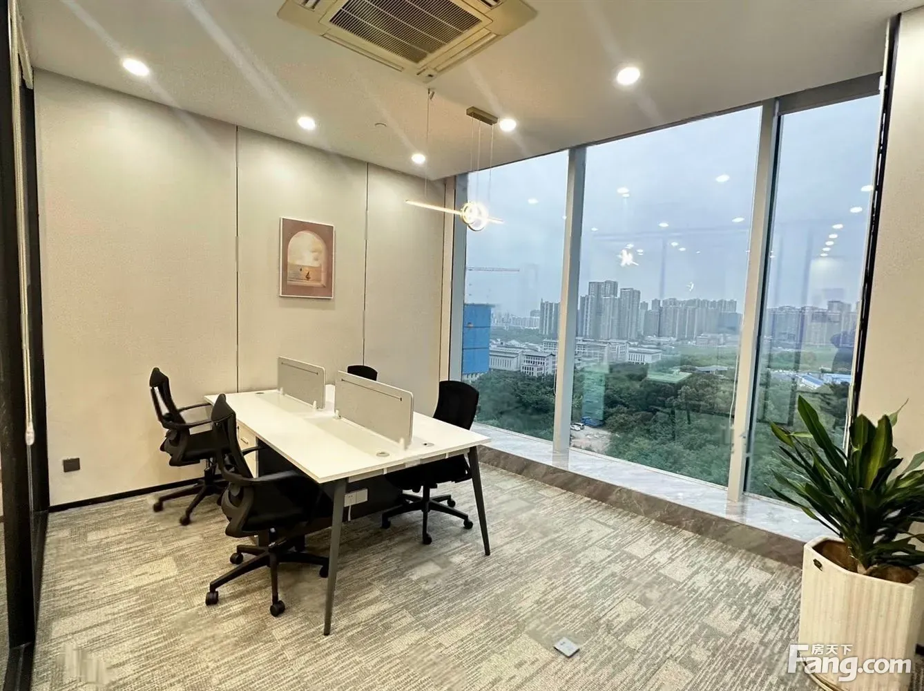 房源介绍: 1.面积:145平 2.户型:【户型】2+1,2个独立隔间加12人工位大厅 3.朝向:正东朝向,视野广阔,采光好非常好。 4.装修:全新精装修,大气前台、配置独立控制的中央空调、办公桌、老板桌、经理桌、茶桌等一应俱全,可直接拎包入驻,随时办公、看房随时我 5.交付方式:押三付三 6.随时看房,有需要可专车接。