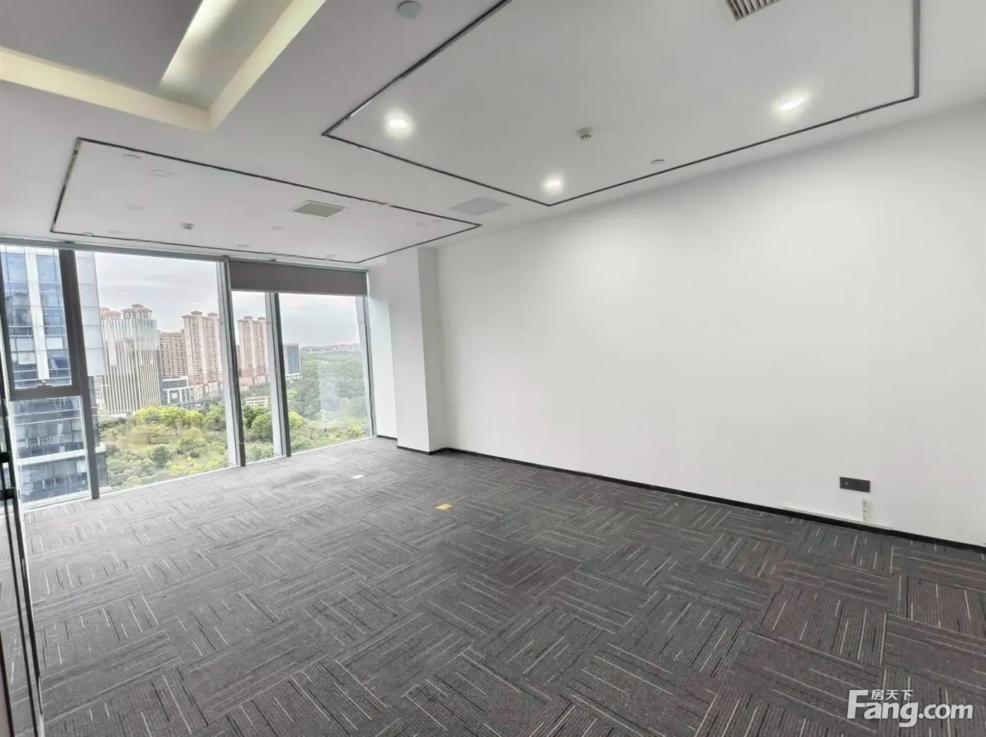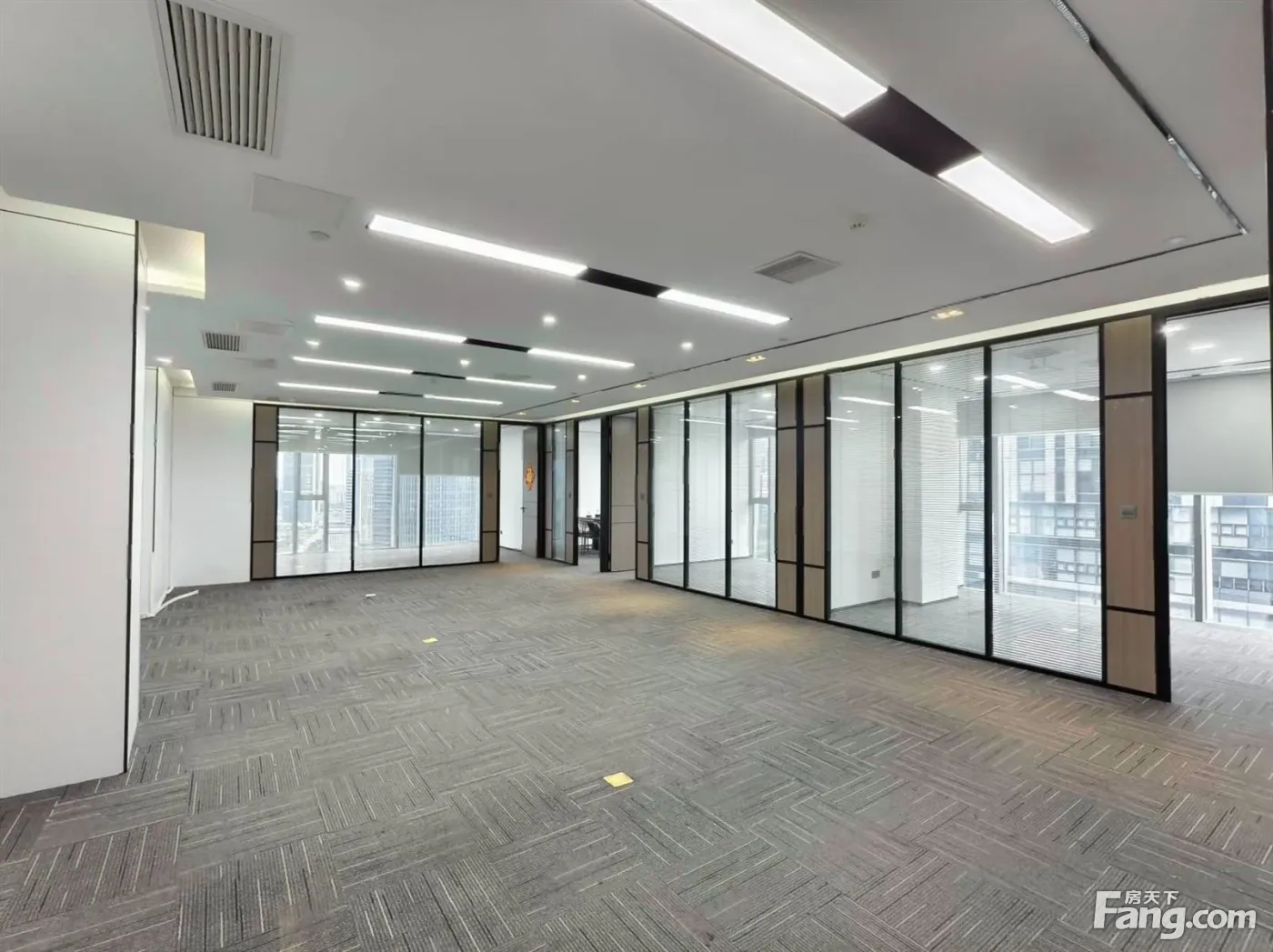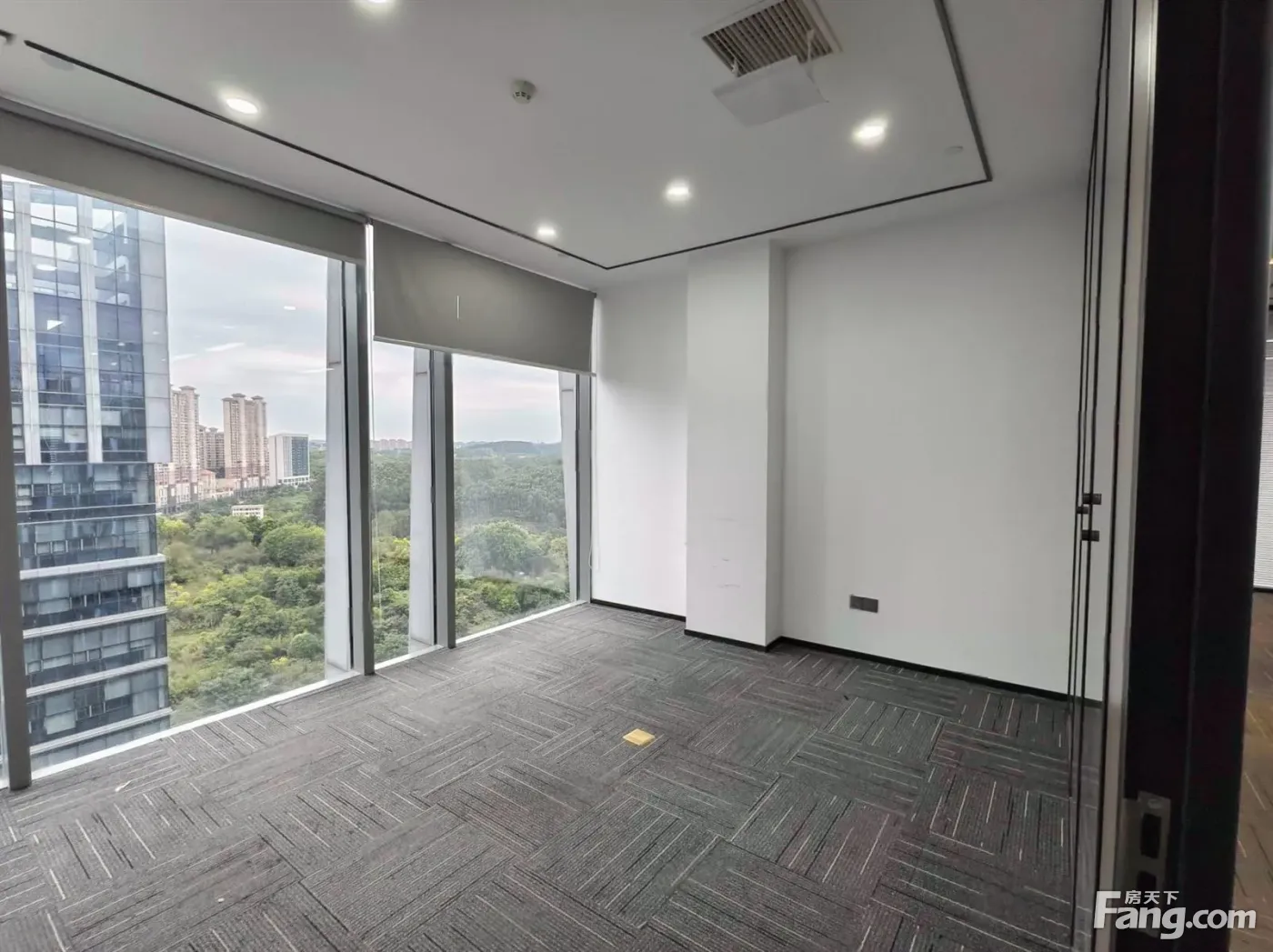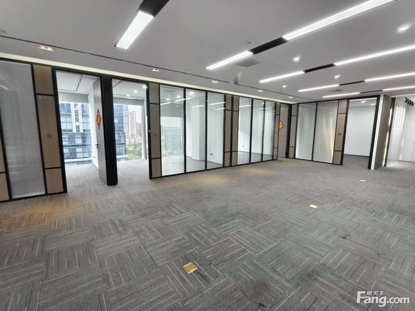 绿地办公室出租 精装5个隔间 全景落地窗朝南看公园 户型方正