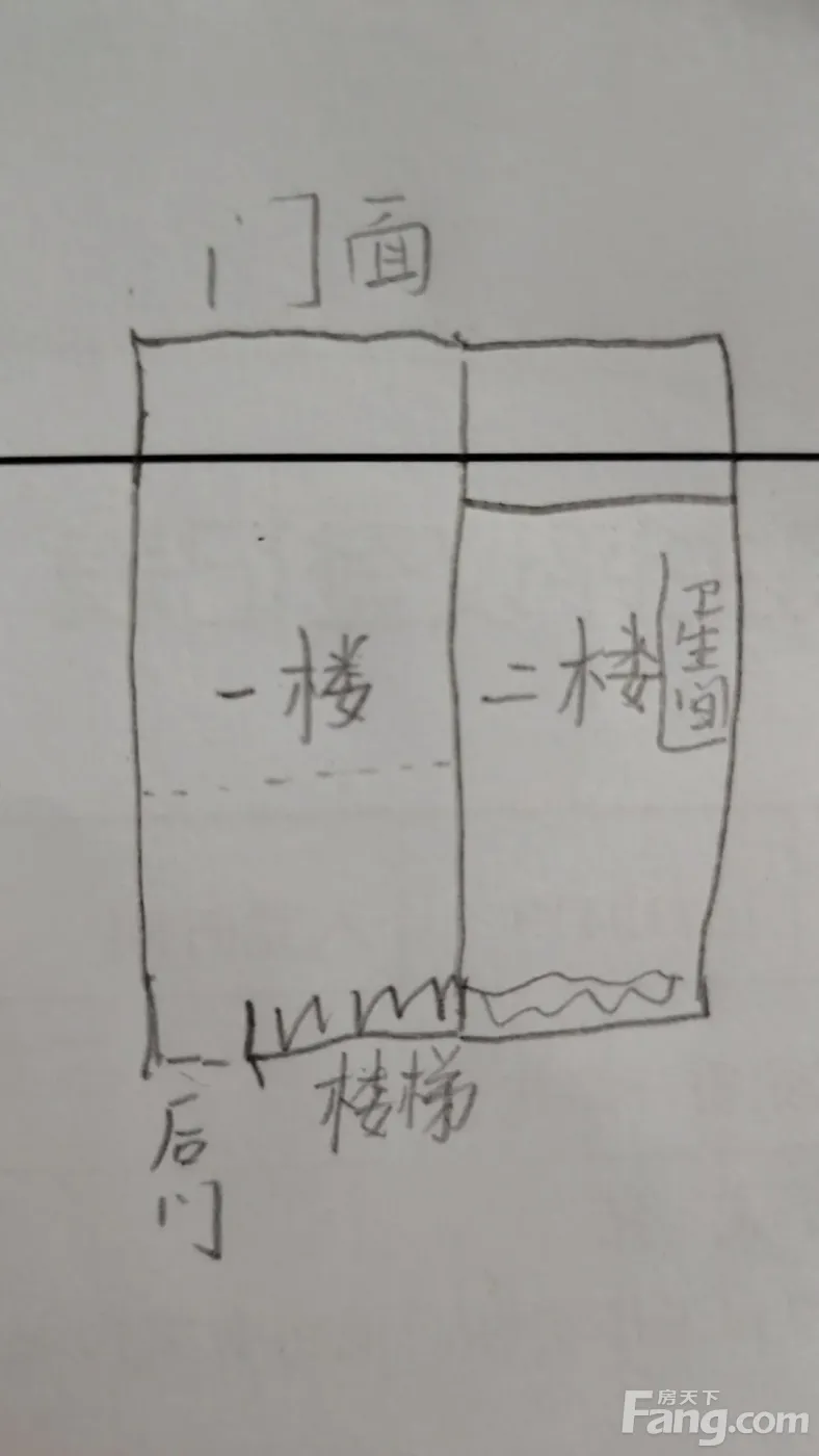 一间店面两层,一楼60平方可经营,二楼可住家,可停车。