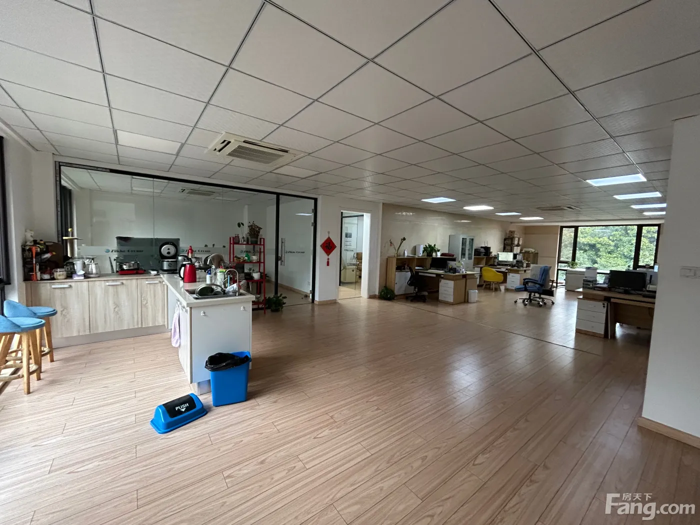 一楼前台茶水室,乒乓球室。二楼办公区域,三楼住宿,三室一厅两卫。有地下室