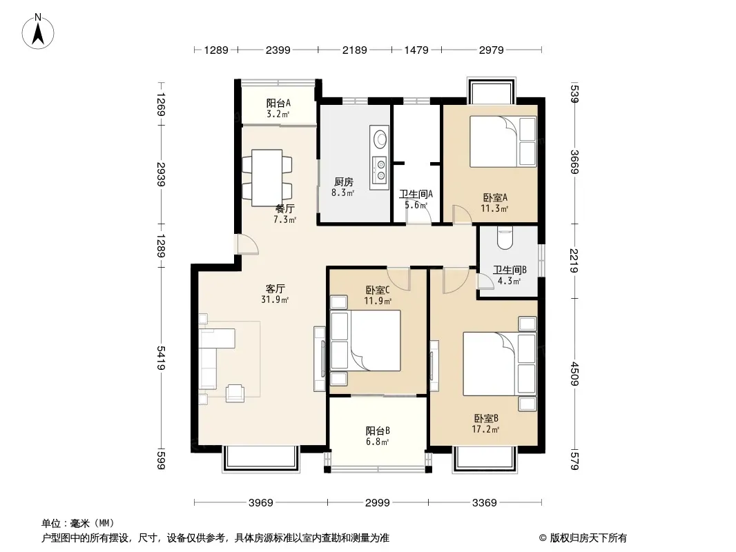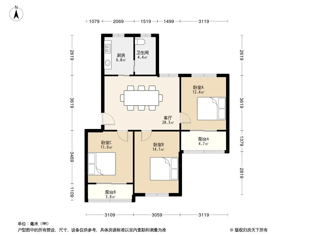 3室2厅1卫