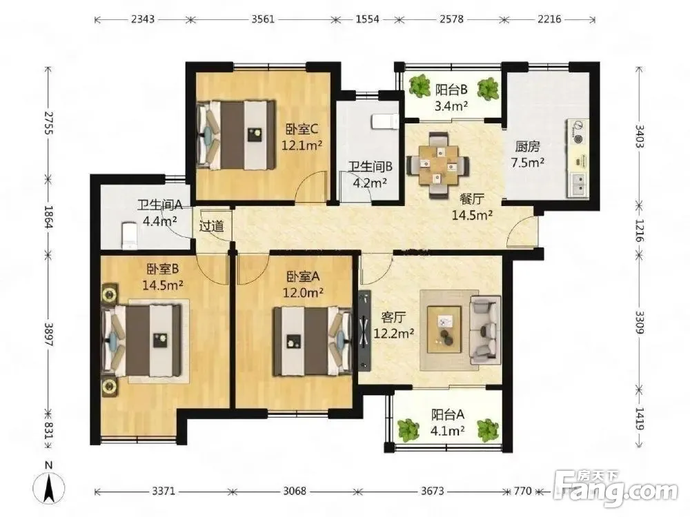 3室2厅1卫
