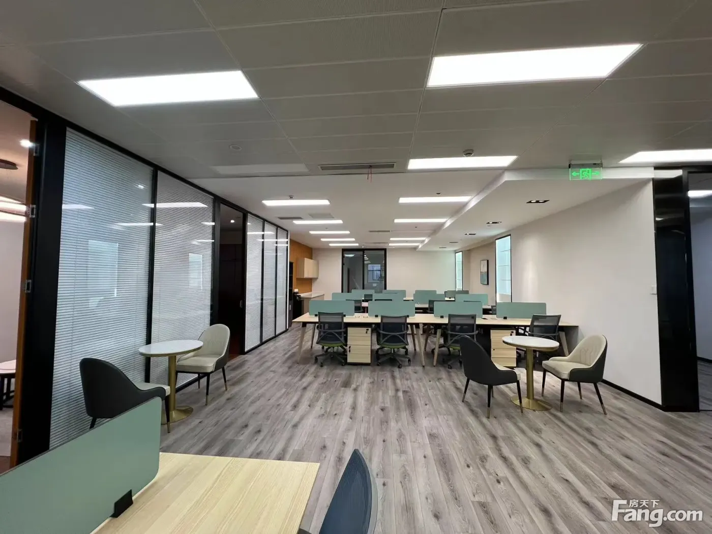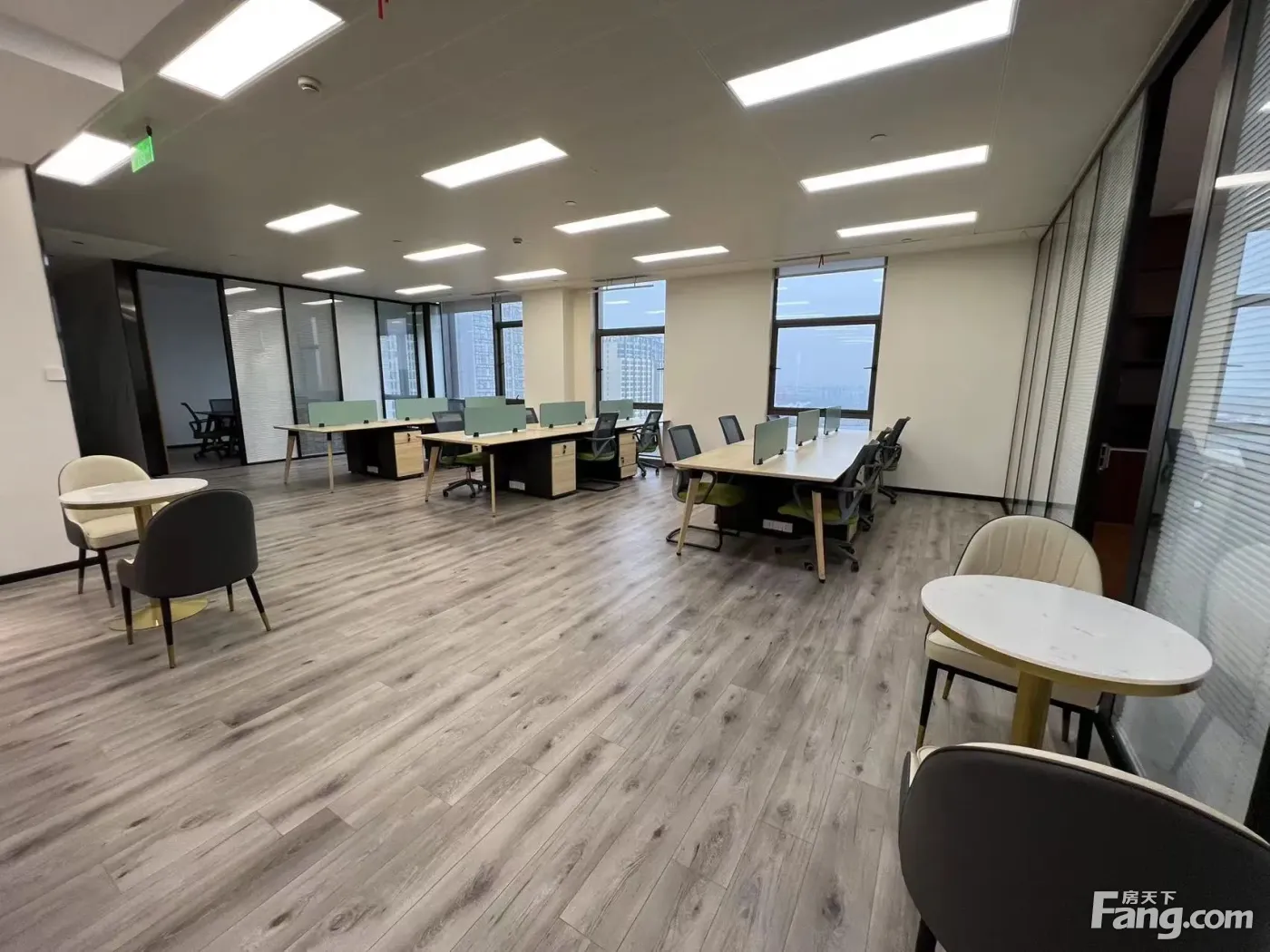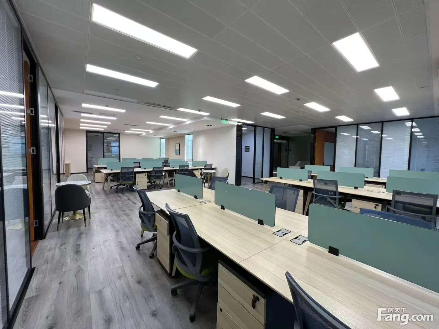 金桥繁华商圈办公室 大前台 4个隔断办公室 24个工位,精装修、带家具,老板间、财务室,会议室均有,户型多样变化可分割;双面采光,高层俯瞰观景房,户型方正得房率70%,双层玻璃隔音安静,户型朝向、大气前台财位、财气、财运旺!