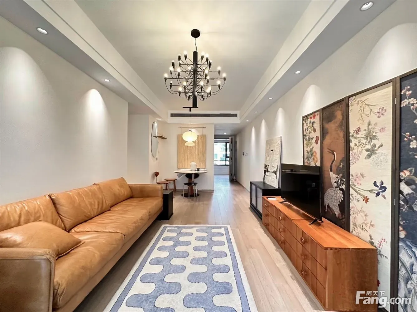 装修风格很好看离大门口进阳台是封好的,可以电动遥控哒