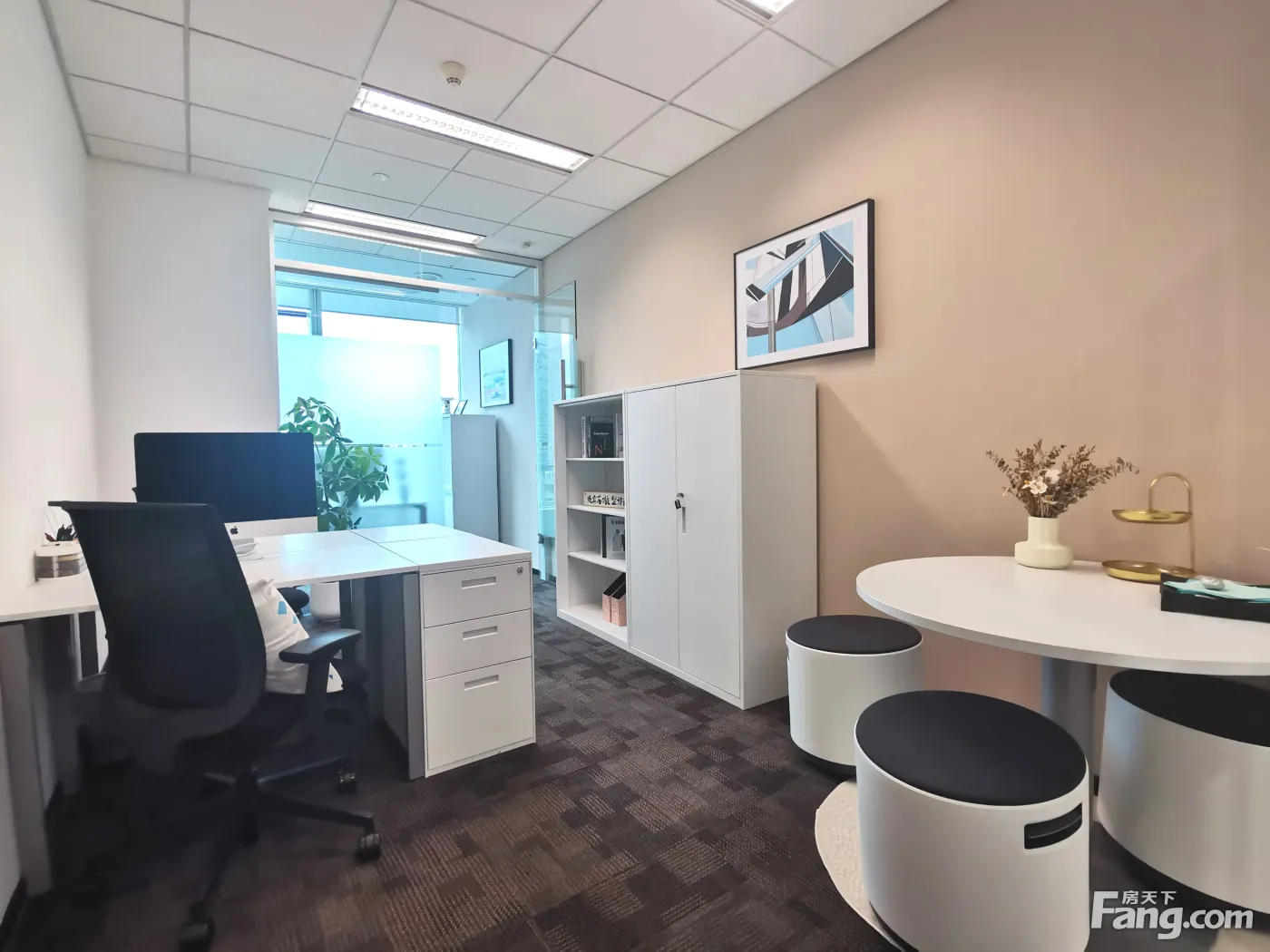 前台接待服务;接待会客室、会议室 配有咖啡机和冲茶设备的茶水间 配有打印室 超大且舒适的共享商务休闲区 包含物业费、水电费、清洁费和前台行政支持,一价全含