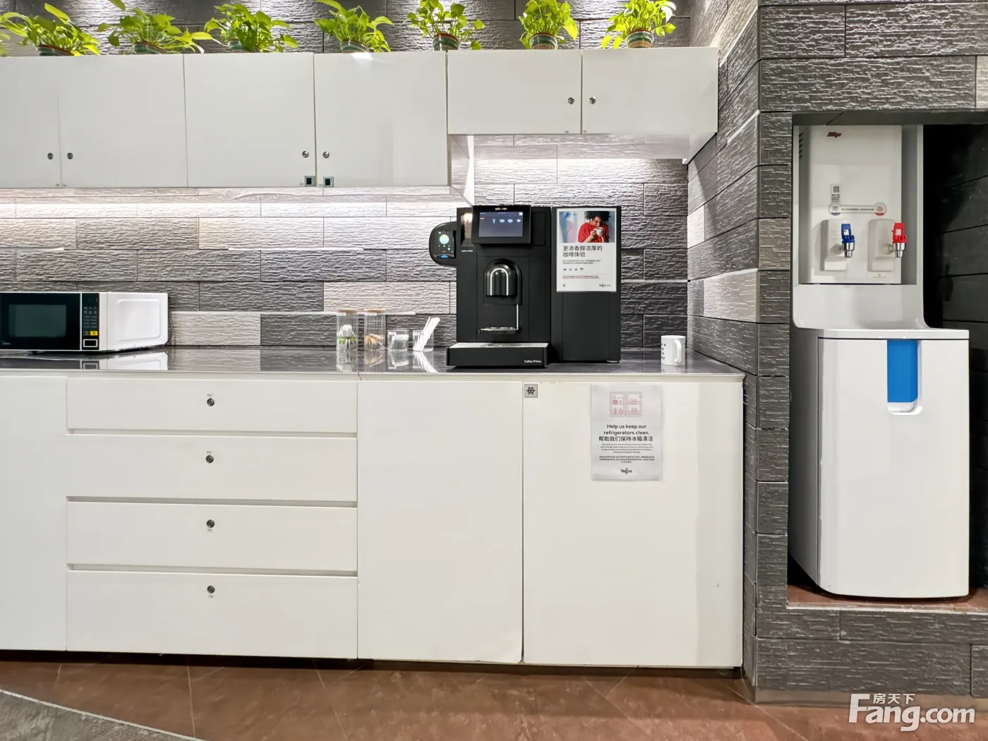 前台接待服务;接待会客室、会议室 配有咖啡机和冲茶设备的茶水间 配有打印室 超大且舒适的共享商务休闲区 包含物业费、水电费、清洁费和前台行政支持,一价全含