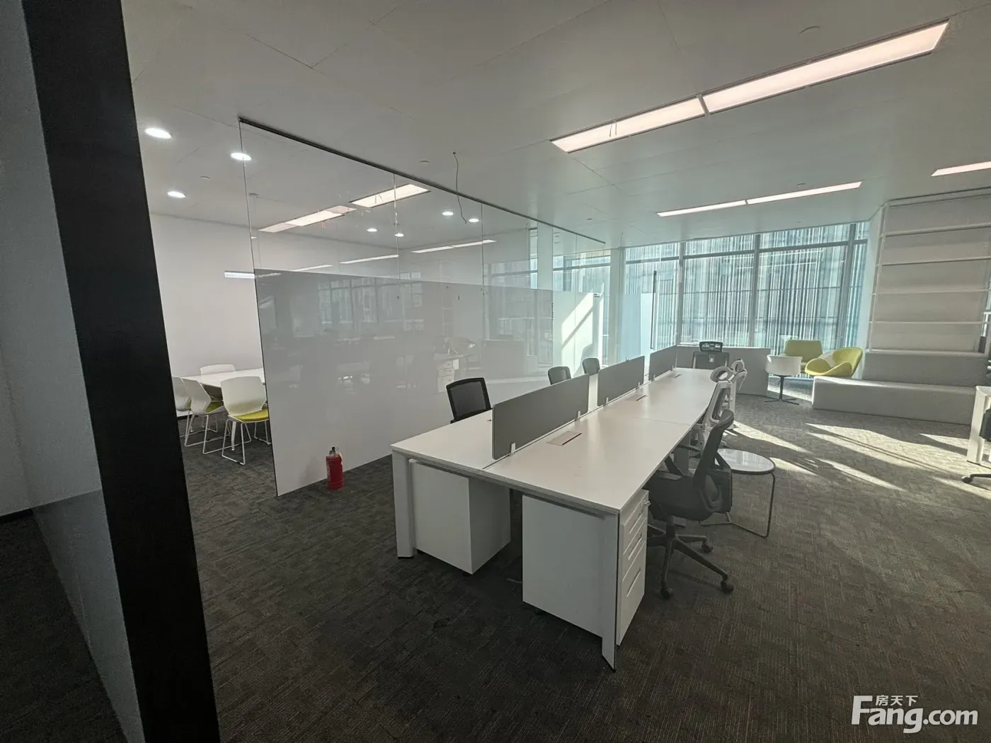 大楼房型端正,坐北朝南,采光,得房,大楼内部为落地窗、大开间,让大楼周边的绚丽美 景尽收眼底,出则繁华纷扰,入则安静怡人。配备空调系统。由专业的物业公司管理,并配 有自动灭火、报警等安护统等安护系统,经济实惠。本房有分割,朝南采光好,精装修可直 接入住,得房,经济实惠