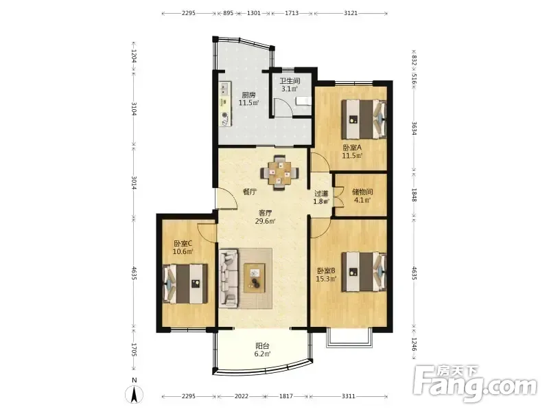 阳城花园 3室2厅 107.16平米