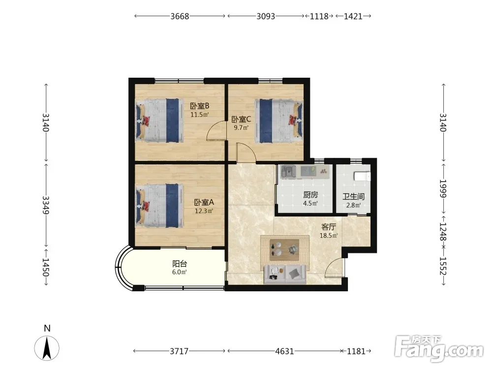 3室1厅1卫