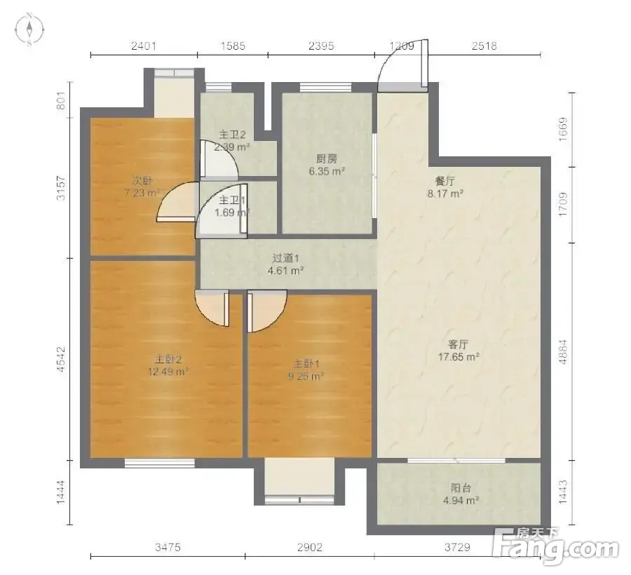 金地世家 3室1厅 89.81平米,看房方便