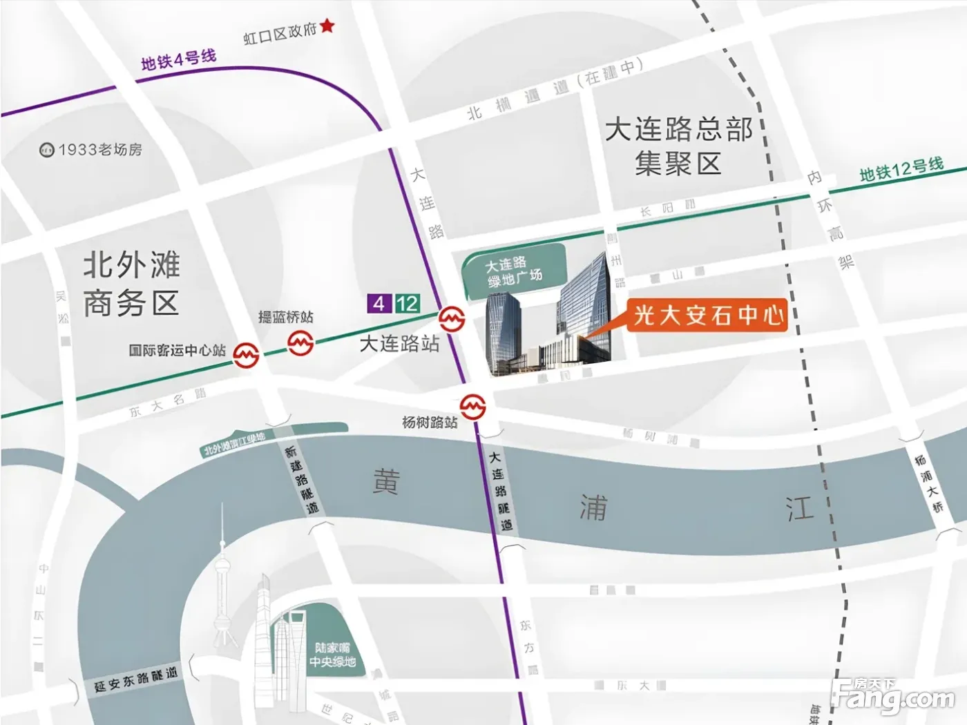 杨浦大连路地铁站丨精致户型丨双轨交汇|光大安石中心|拎包办公