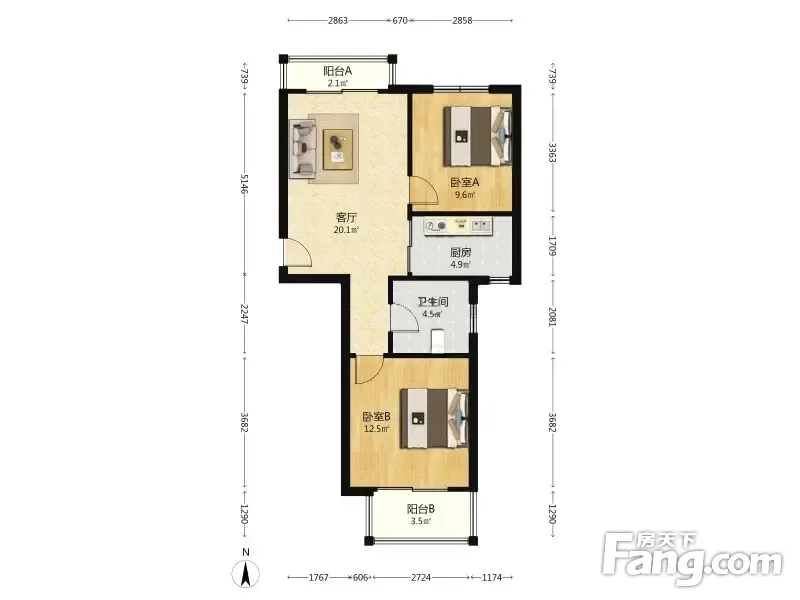 东苑佳和园 2室1厅 77.23平米
