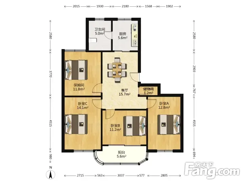 三明花园 4室1厅 106.0平米