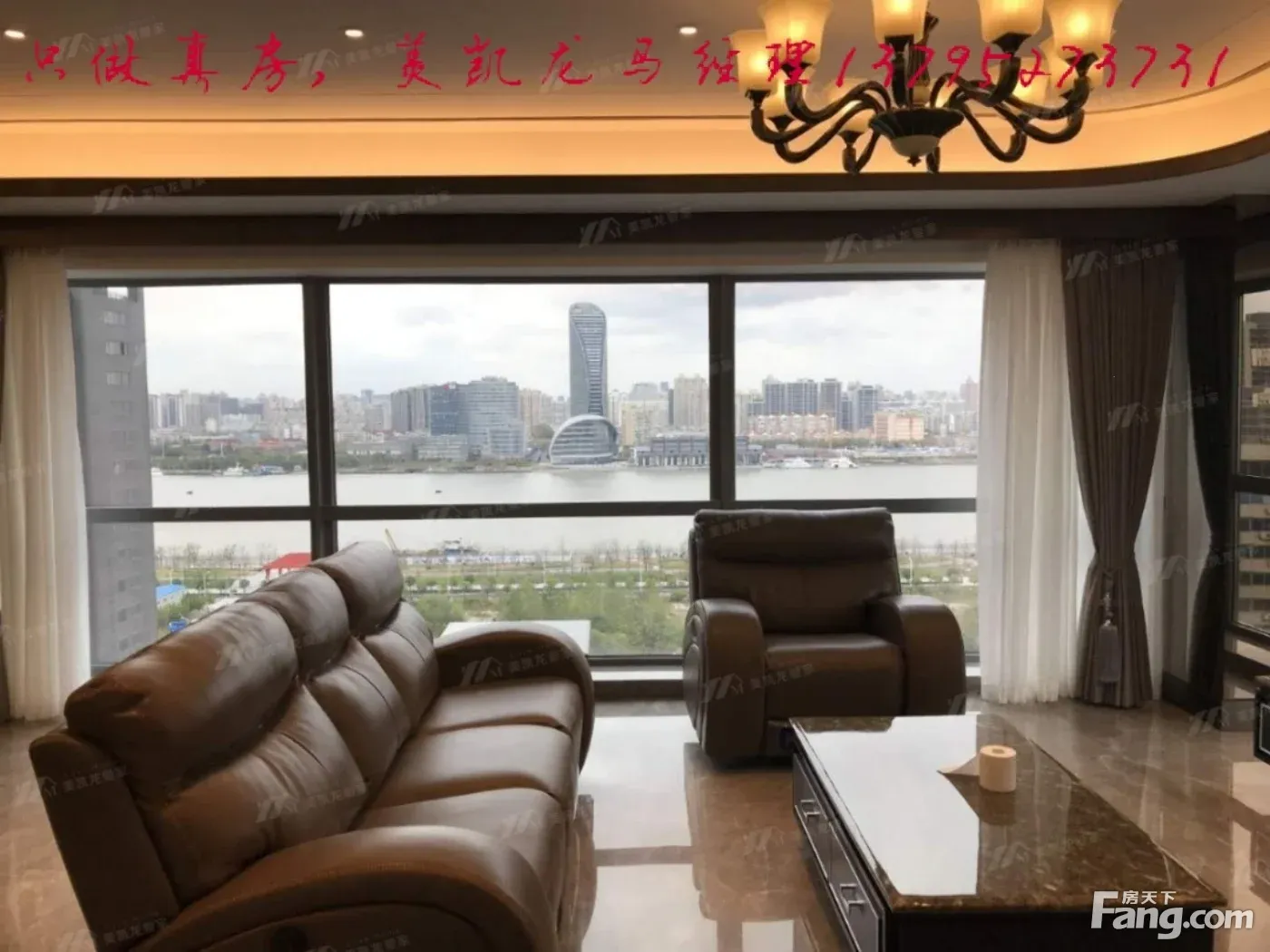 房源亮点 万科翡翠滨江1期带江景;精装修;全落地窗;家具配齐 1、户型描述: 168平,3房2厅2卫; 户型方正,南北朝向,客厅餐厅一体设计,朝北向观江,面积约40平左右,落地窗 设计,北向东向双面采光,南向三个卧室,主卧套房,带衣帽间,卫生间,南向中间 次卧带飘窗,另外一个次卧带一个阳台,方便清洗晾晒衣物137.9527,3731马艳伟 2、装修描述: 开发商精装修交付,全屋威能地暖,大金空调,霍尼韦尔新风系统,嘉 格纳厨房电器,净水软水系统,浅灰色天然大理石地砖,外立面风格采用玻璃幕 墙加铝合金板设计,时尚现代,采光好; 3、保养状况: 开发商精装修交付,全屋地暖,客厅天然大理石地砖,卧室是实木地板,前面租客 高素质,爱干净 4、房屋出租优点: 高区视野,北向看黄埔江景,无遮挡,南向视野一览无遗,精致三房,房况保养都比 较好,家具配齐; 5、景观亮点: 高区江景,北向客厅,主卧卫生间都可以看黄浦江景观,南向视野无遮挡, 一览无遗;