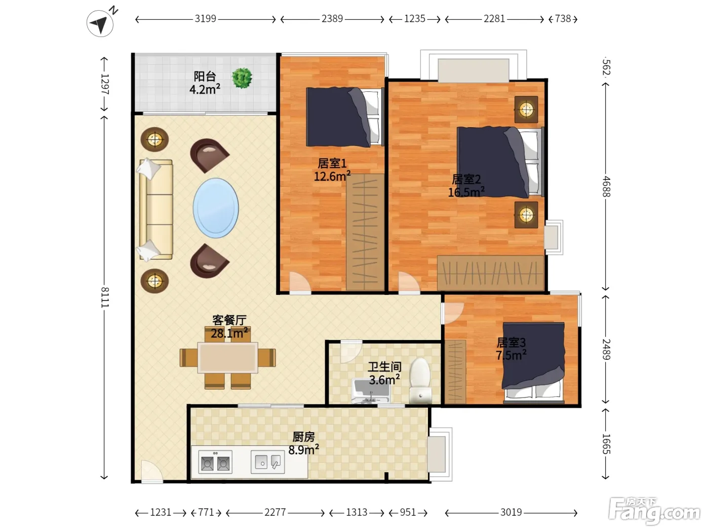 3室2厅1卫