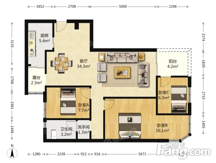 整租·鸿隆世纪广场 3室1厅 北