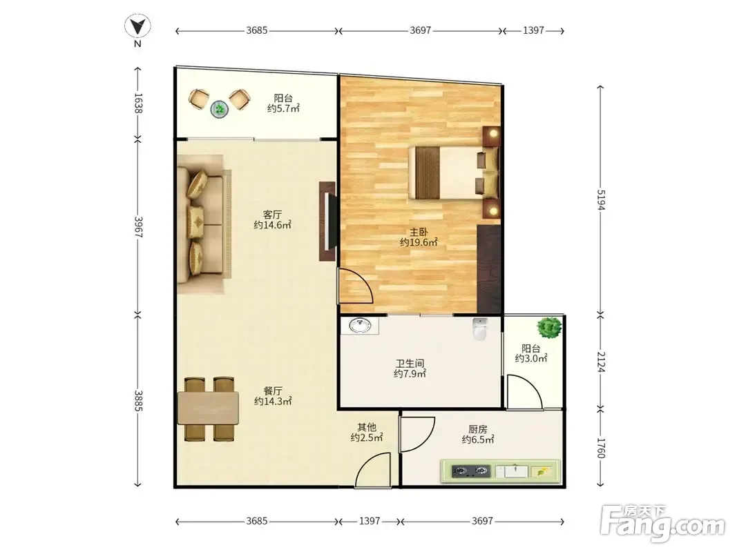 1室2厅1卫
