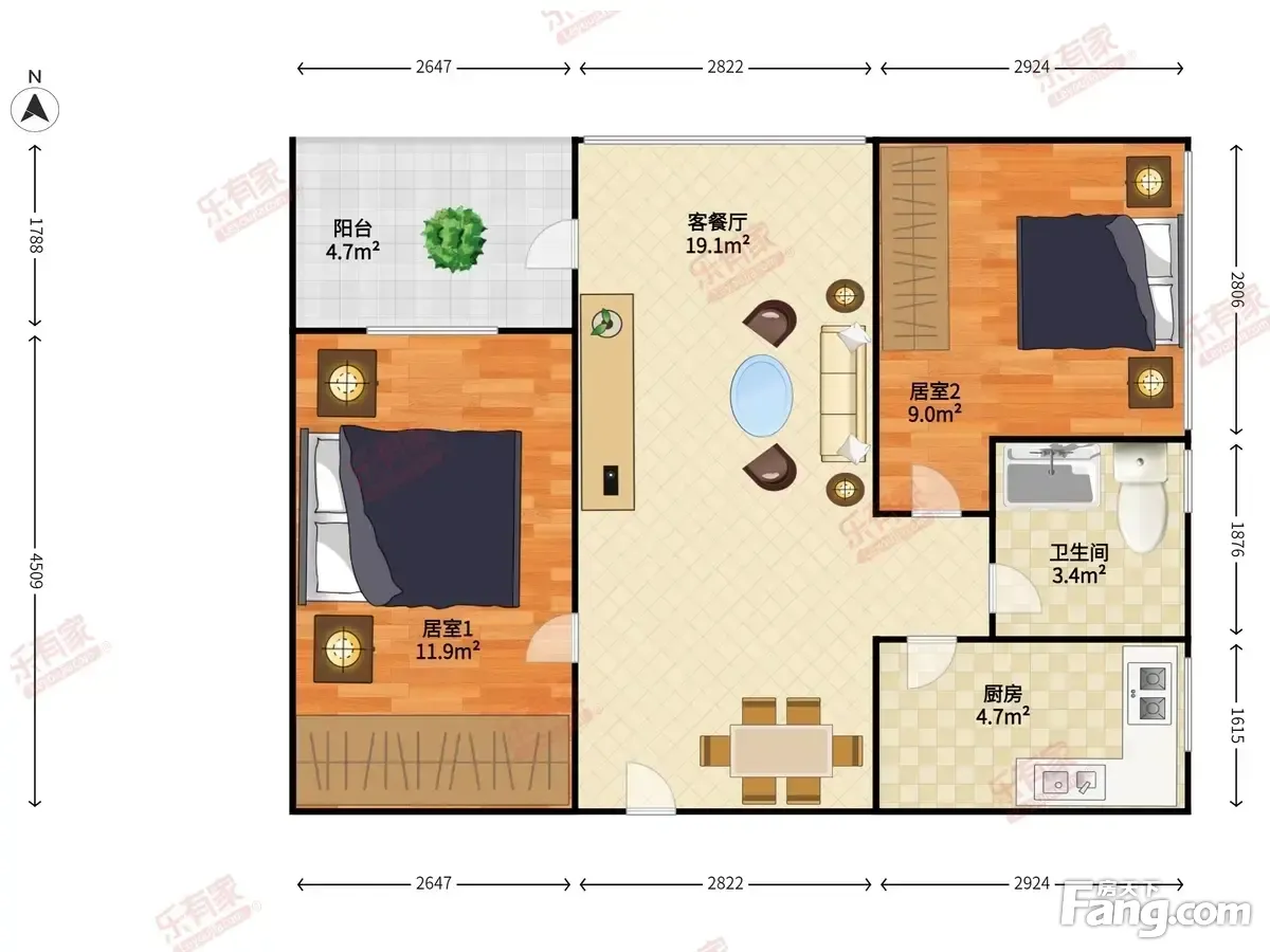 万科云城 2房2厅1卫 62.26㎡