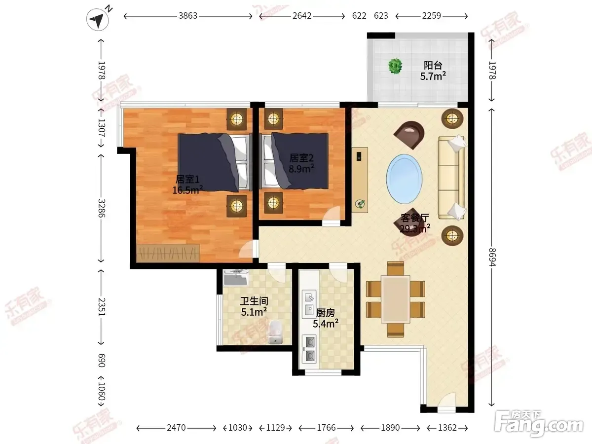 2室2厅1卫