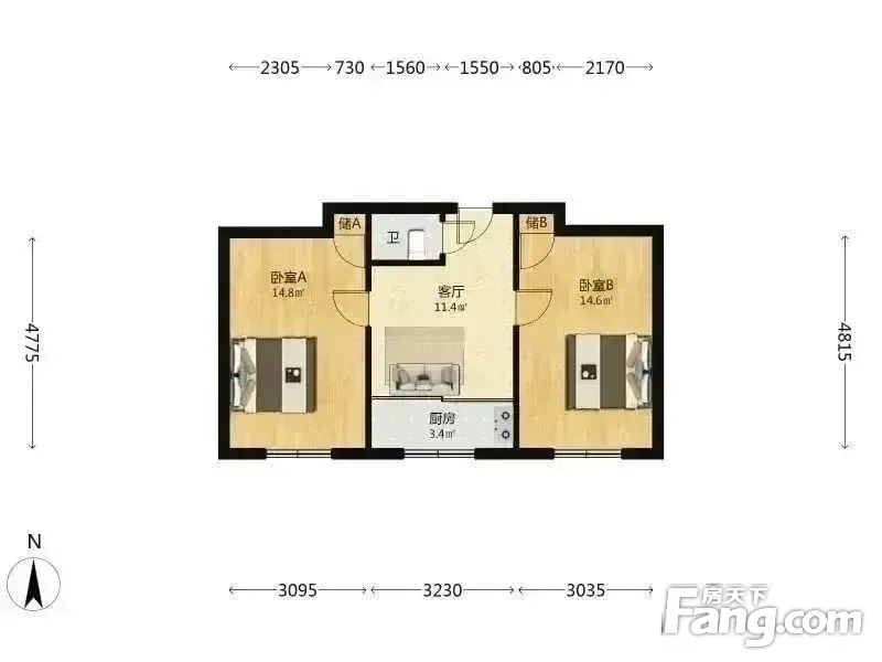 凤园北里正规2居2400南北朝向随时看房