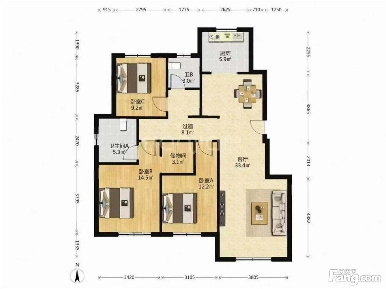 3室2厅1卫