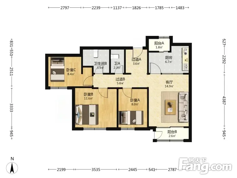 3室1厅2卫