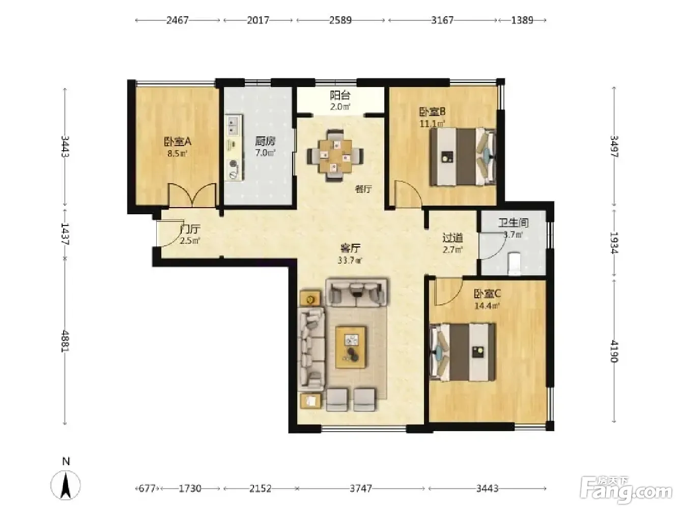 3室2厅1卫