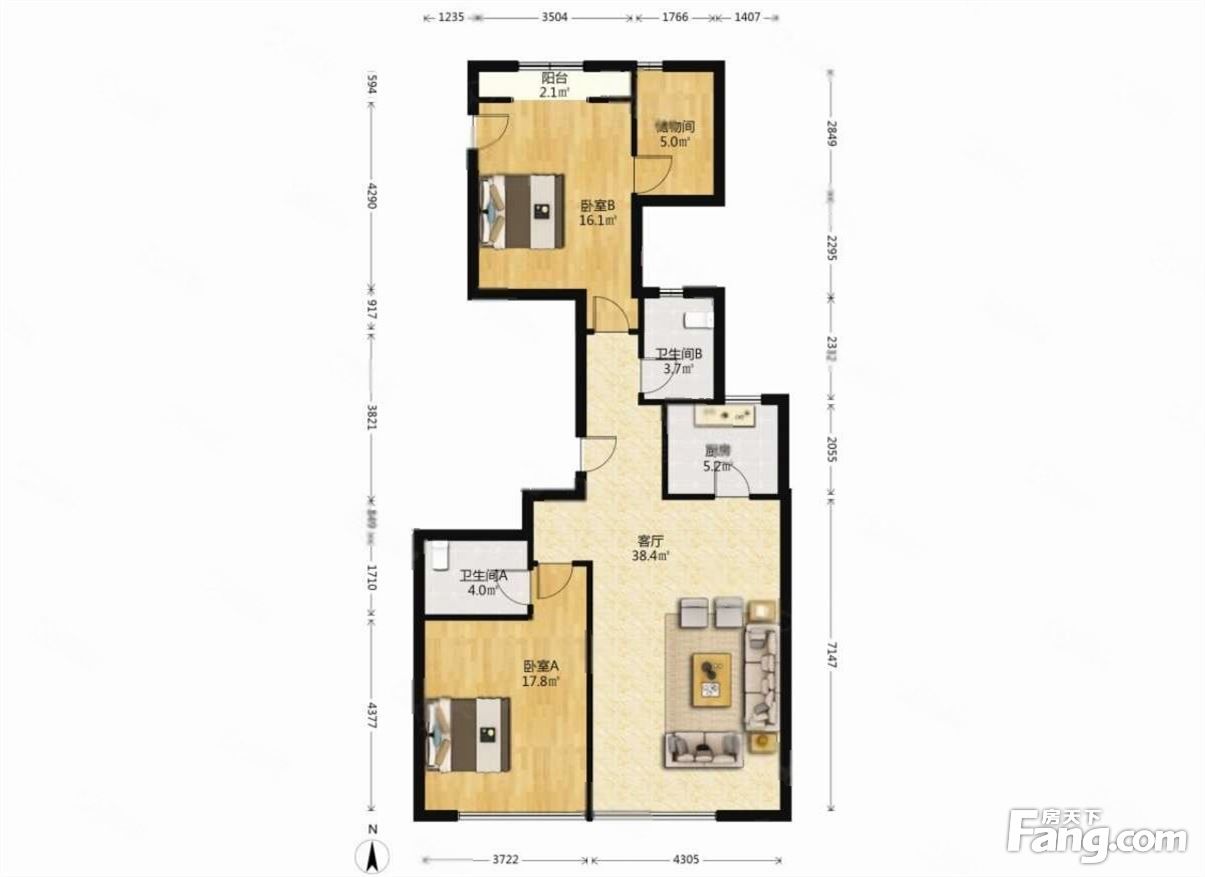 犀地 2室1厅2卫 电梯房 131平米
