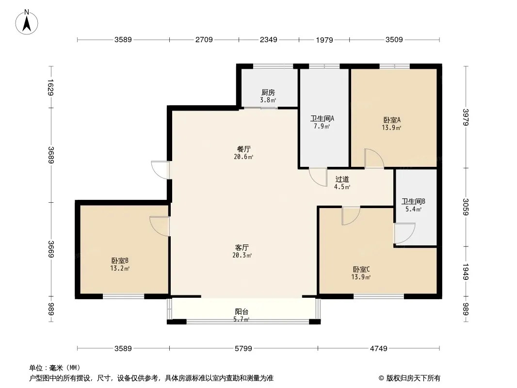 丰润老城区美景天苑 3室2厅 120.35㎡ 1300元/月