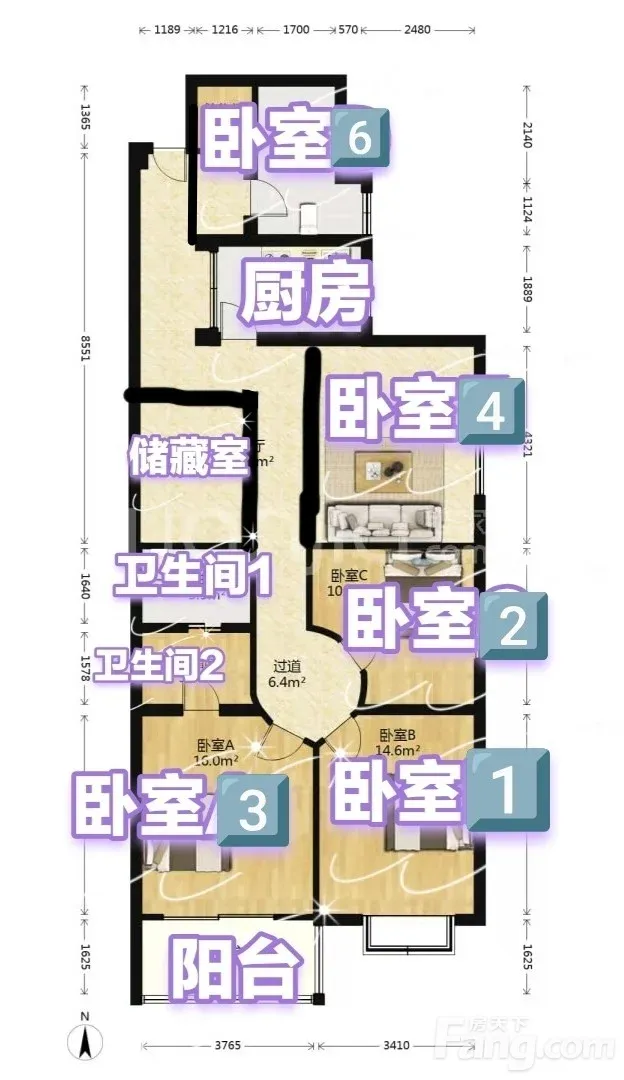 5室1厅2卫