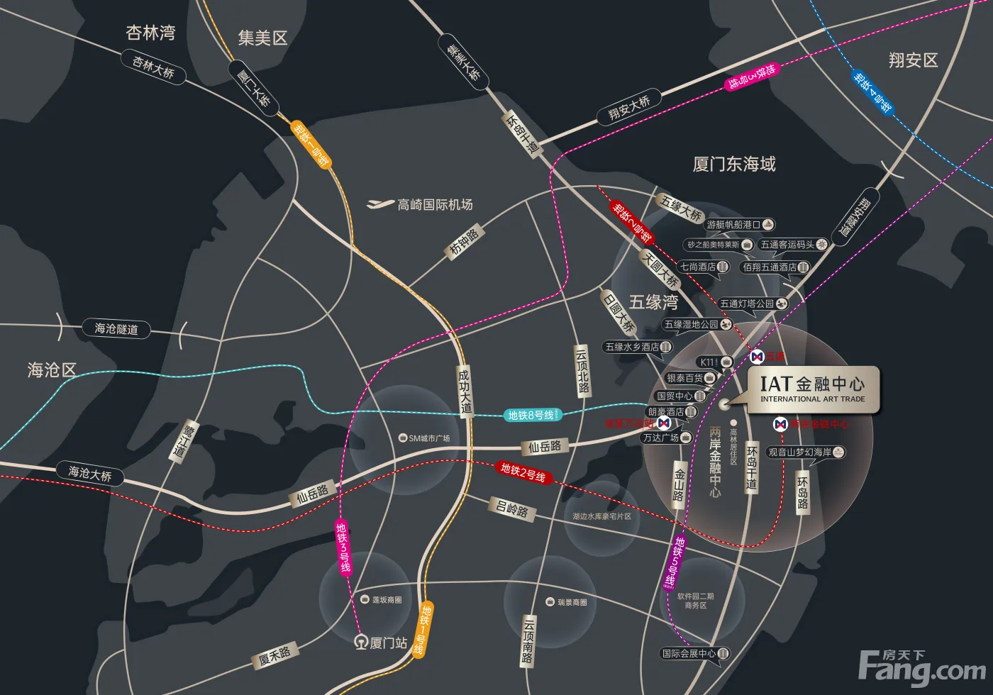 超低公摊!超低公摊!超低公摊! ?项目信息 【项目位置】:两岸金融片区 【项目楼层】:地上27层,地下3层 【地下车位】:停车位705个 【户型面积】:标准层面积约2200㎡,规划6个单元 【交付标准】:毛坯/精装交付 【物业管理】:福建罗约物业管理有限公司 ?项目配套 自带1.2万商业(休闲餐饮、美食烘焙、宴请中餐、商超等)、会议室、茶水间、停车场 【交通配套】: ?:临环岛干道、环岛路、仙岳路,快速接驳翔安大桥/隧道、海沧大桥,速达集美/杏林/厦门大桥 ?:直达五通客运码头 ?:经由环岛干道通达高崎国际机场,经由翔安隧道通达翔安国际机场(建设中) ?:接驳地铁2号线、5号线(规划) ?:500米范围内17条公交站点联动岛内外