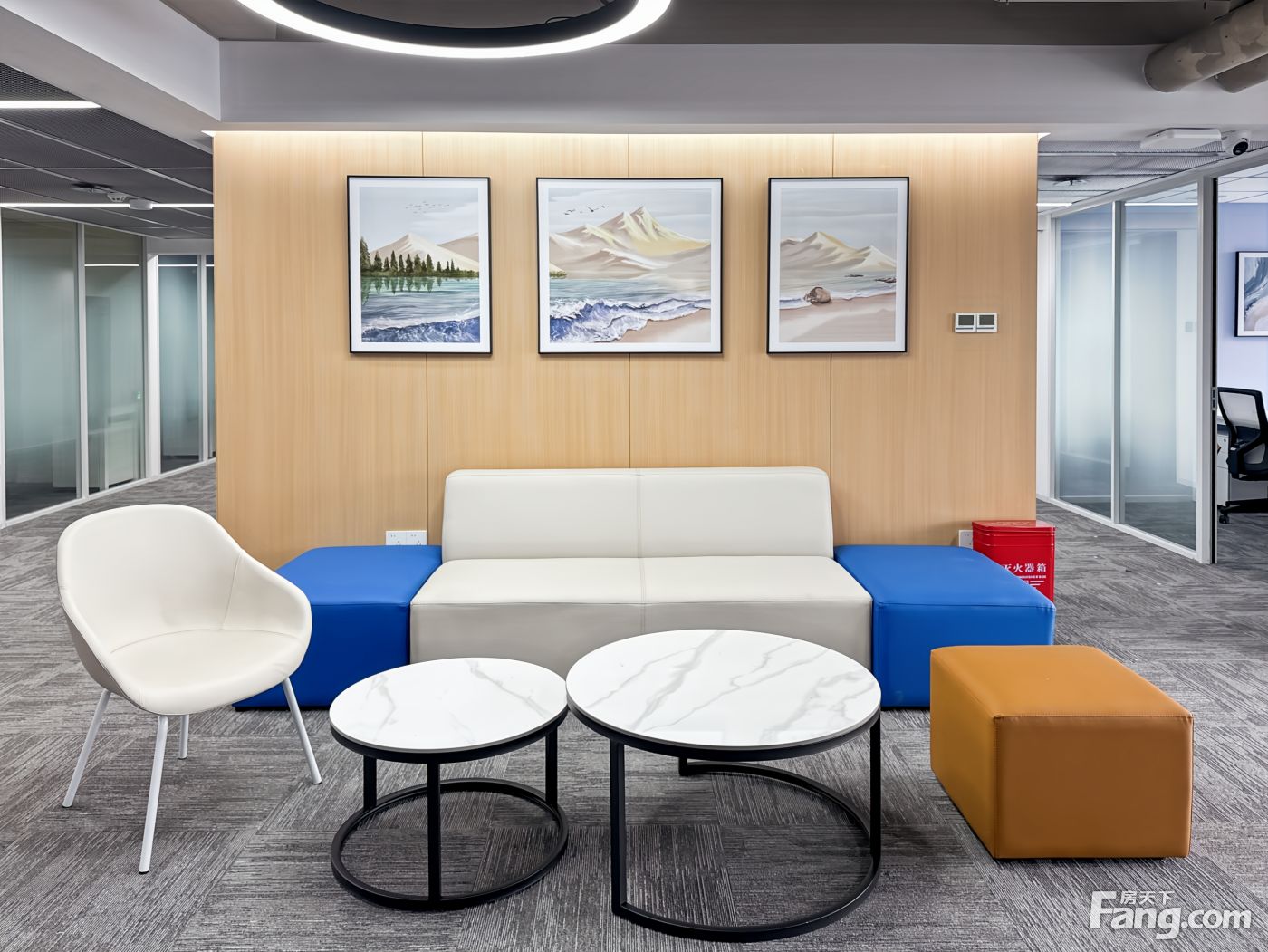 前台接待&接待会客室、会议室 配有咖啡机和冲茶设备的茶水间 配有打印室 超大且舒适的共享商务休闲区 包含物业费、水电费、清洁费和前台行政支持,一价全含