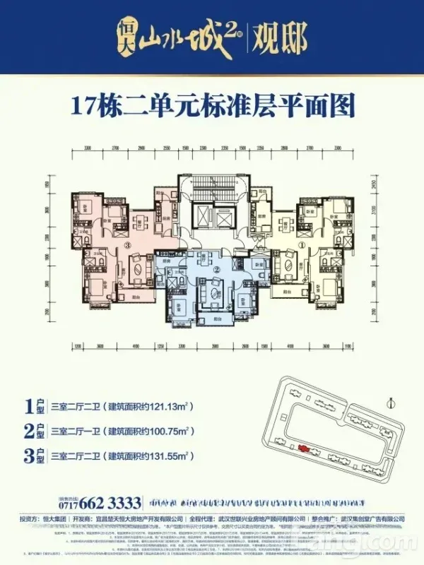 伍家岗火车东站恒大山水城 3室2厅 121㎡ 1700元/月