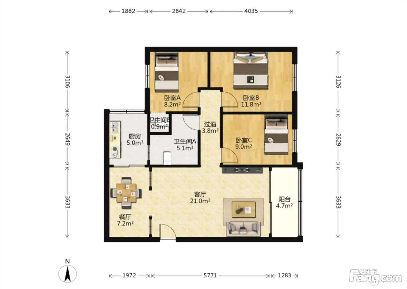 3室2厅1卫
