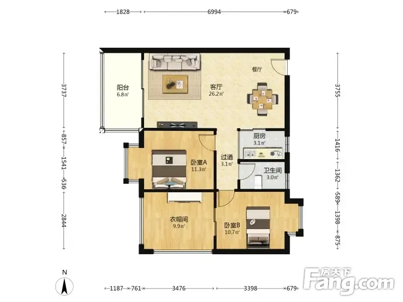 万威美地 3室2厅 83.2平米