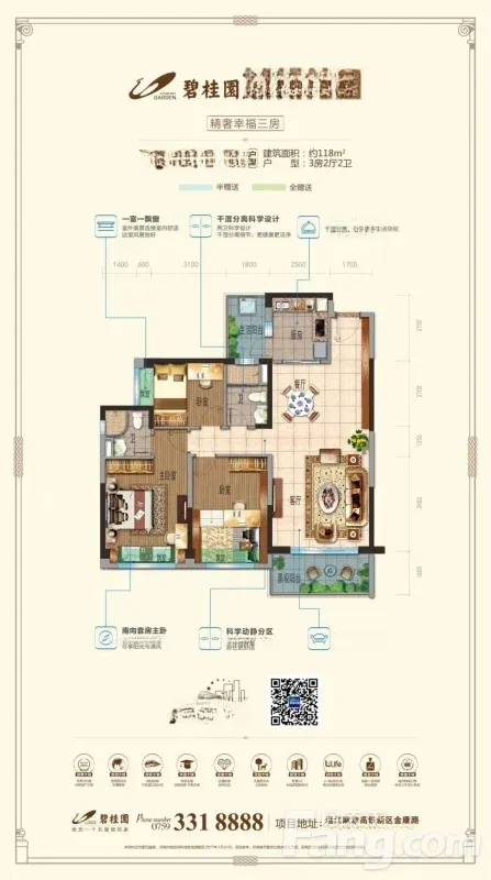 麻章碧桂园城邦花园3室2厅出租